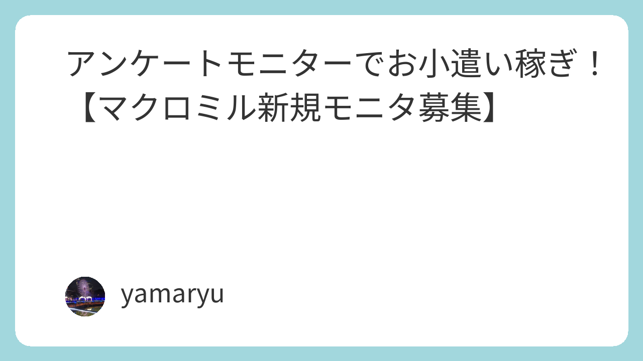 アンケートに答えるだけでお小遣いを稼ぎたい方には、マクロミルがおすすめです。初心者でも安心して参加できる、新規モニタ募集が行われています。