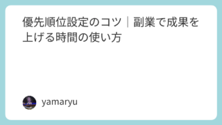 副業効率化優先順位設定のコツ|副業で成果を上げる時間の使い方 はじめに副業をしていると、やるべきことがたくさんあり、どれから手をつけるべきか迷うことがあります。優先順位をうまく設定しなければ、効率が落ちたり、成果が思うように出なかったりすることも少なくありません。そこで本記事では、副業で成果を最大化す... 2025.10.17副業効率化時間管理